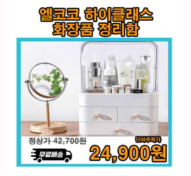 3단 서랍형 OOOO 립밤, 손톱깍이, 립스티, 화장솜 등 작은 소품을 보관할 수 있는 공간, 화장 브러쉬, 아이라이너, 빗 등 큰 사이즈의 소품을 보관할 수 있는 공간 등 넓고 다양한 OOOO으로 더 많은 소품을 효율적으로 정리할 수 있습니다. OOOO에 들어갈 문구는 무엇일까요?