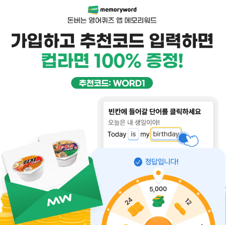 메모리워드의 OOO 퀴즈로 캐시 쌓으며 발음 공부까지 할 수 있어요!