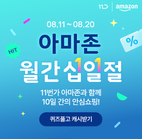 단 10일, 아마존 월간십일절에서 다양한 할인 이벤트가 시작되었습니다~ 스페셜 딜 상품과 인기 키워드로 알아보는 아마존 OOO템까지! 믿고 살 수 있는 11번가에서 구경해보세요! OOO에 들어갈 단어는 무엇일까요?