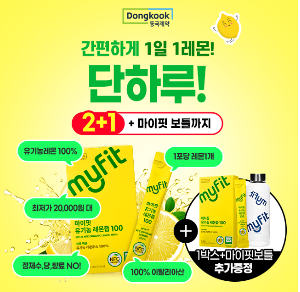 물 없이 레몬을 통째로 담아 원물 본연의 맛과 영양소 파괴를 최소화한 100% 레몬 과즙 OOO공법으로 만든 동국제약 유기농 레몬 100! 지마켓 슈퍼딜에서만 2+1에 보틀까지 증정으로! 한정수량이니 서둘러 마지막 기회 놓치지마세요!